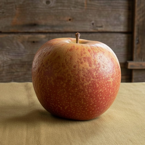 subacid – coarse and firm, and it is the most highly flavored of all the Cox’s offspring. Rich and aromatic with intense nutty and honeyed flavors. Mellows after a month in storage.